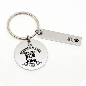 Deze mooie gepersonaliseerde sleutelhanger is speciaal voor de echte Border Collie hondenmama's. Verwen jezelf of een ander met deze 'Deze Border Collie Hondenmama Is Van' RVS sleutelhanger. Personaliseer je cadeau door er de naam van je trouwe viervoeter er aan toe te voegen! Zo kan je je hondenkindje altijd bij je dragen.