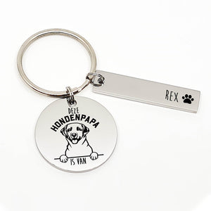 Heb jij een trouwe Labrador Retriever als hondenkindje? of ken jij iemand die hondenpapa is van een Labrador Retriever? Dan is deze 'deze labrador retriever hondenpapa is van' sleutelhanger een goed cadeau! Personaliseer de sleutelhanger door er de naam van de trouwe viervoeter er aan toe te voegen