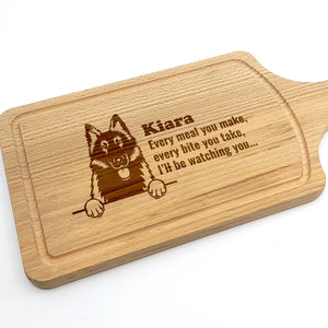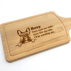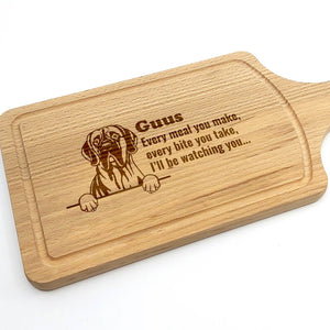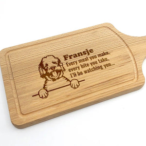 Deze Gegraveerde Hapjesplank is een echte eye-catcher. Wij gebruiken alleen hoogwaardig Europees hout. Elke hapjesplank wordt vooraf behandeld, waardoor het niet kromtrekt door vocht of temperatuurwisselingen. Deze borrelplank is zowel geschikt om op te snijden als te serveren.