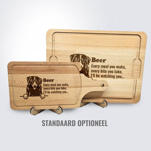 Let op: Hout is een natuurproduct. Hierdoor zal elke gravure iets afwijken van de foto's. Dit komt simpelweg omdat de nerf van het hout bepaald hoe donker de gravure wordt. Dit maakt elke borrelplank wel 100% uniek!