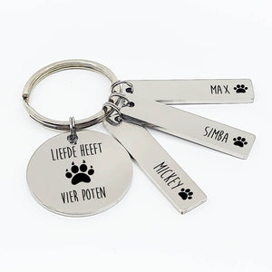 Wanneer je thuis komt en er een enthousiaste viervoeter op je te wachten staat overvloeid je hart met liefde. Heb jij ook altijd dit gevoel bij jouw honden of kattenkindje of ken je iemand die zo denkt? Dan is deze 'Liefde heeft vier poten' RVS sleutelhanger een origineel cadeau! Personaliseer hem door er alle lievelingetjes aan toe te voegen!