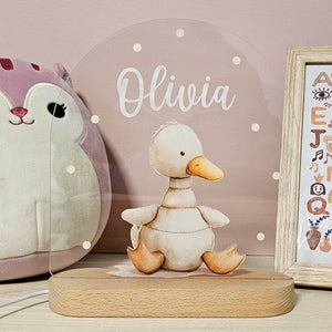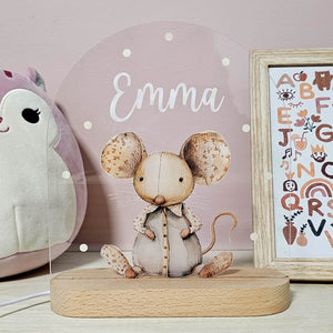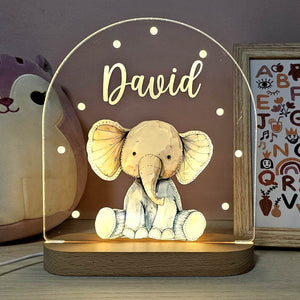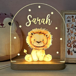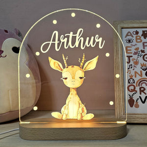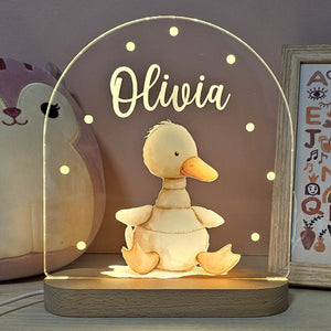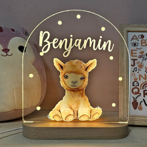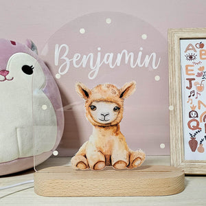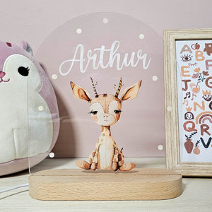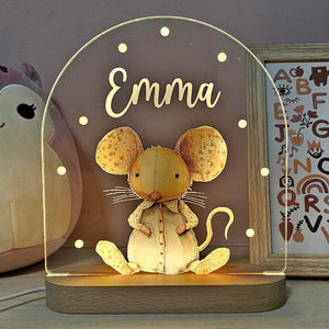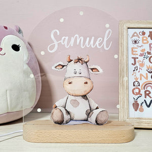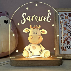 Superschattige knuffeldiertjes afgebeeld met eigen naam op een bedlampje. Dit nachtlampje zal jouw kinderkamer helemaal afmaken.