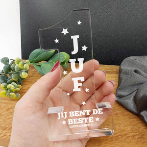 Is jouw juf of meester de beste ooit? Geef hem of haar dan dit prachtige plexiglas #1 cadeau!