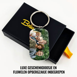 De sleutelhanger is vervaardigd van hoogwaardige materialen, waardoor de foto jarenlang scherp en mooi blijft. Maak van je dagelijkse accessoires iets bijzonders en personaliseer deze hanger met de afbeelding die jou het meest dierbaar is.