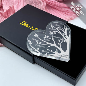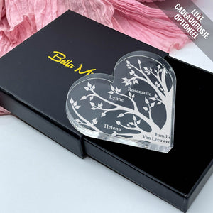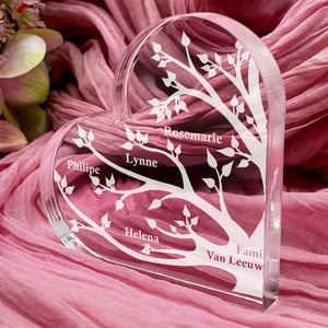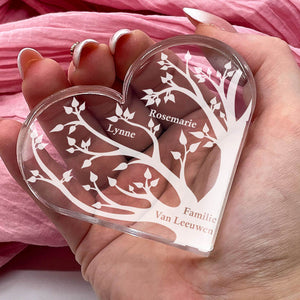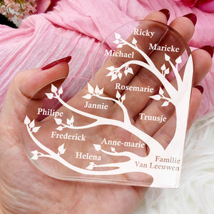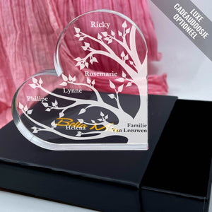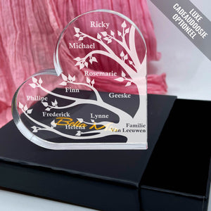 Heb jij nog een uniek cadeau nodig voor je moeder of oma? Geef dan nu deze originele Familie boom hart cadeau! Je kunt dit hart personaliseren doordat je tot wel 10 namen in kunt vullen. Een hartwarmend cadeau waarbij je een gegarandeerde glimlach bij ontvangst krijgt.