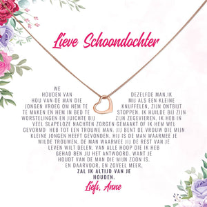 Onze "Schoondochter, We Houden Van Dezelfde Man Ketting" wordt geleverd met een gepersonaliseerd kaartje.