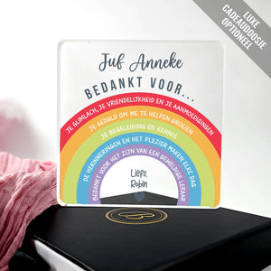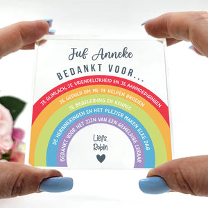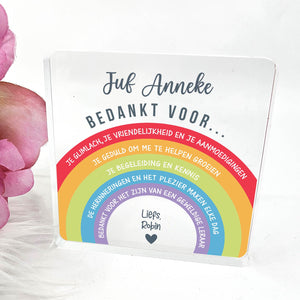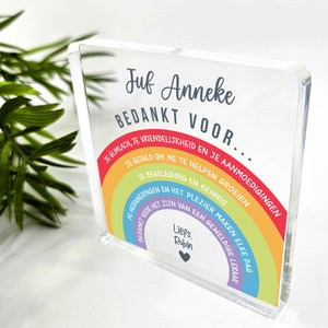 Doe vandaag nog een prachtig plexiglas Aandenken met persoonlijke boodschap cadeau. Lasergegraveerd met eigen namen en een dikte van 1 cm.