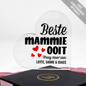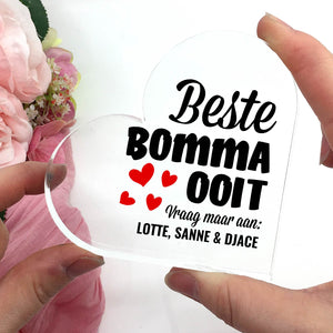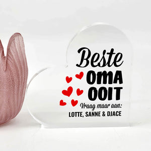 Doe vandaag nog een prachtig plexiglas hart met persoonlijke boodschap cadeau. Lasergegraveerd met eigen namen en een dikte van 1 cm.