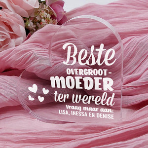 Doe vandaag nog een prachtig plexiglas hart met persoonlijke boodschap cadeau. Lasergegraveerd met eigen namen en een dikte van 1 cm.