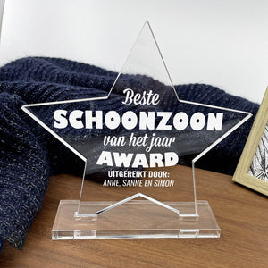 Doe vandaag nog een prachtig plexiglas Award met eigen namen cadeau. Lasergegraveerd met eigen namen van de kinderen.