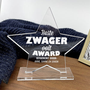 Doe vandaag nog een prachtig plexiglas Award met eigen namen cadeau. Lasergegraveerd met eigen namen van de kinderen.