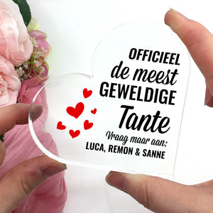 Doe vandaag nog een prachtig plexiglas hart met persoonlijke boodschap cadeau. Lasergegraveerd met eigen namen en een dikte van 1 cm.
