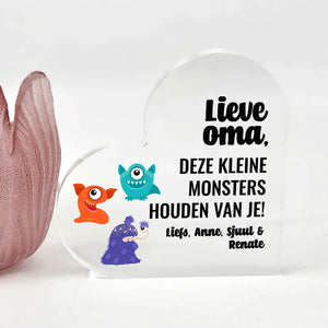 Willen jullie mama of oma laten weten dat jullie zo ontzettend van haar houden? Geef mama of oma nu deze prachtige boodschap op een glazen hart cadeau! Je kunt de hart personaliseren door er jullie naam aan toe te voegen.