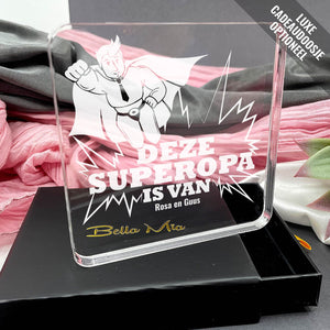 Doe vandaag nog een prachtig plexiglas Aandenken met persoonlijke boodschap cadeau. Lasergegraveerd met eigen namen en een dikte van 1 cm.