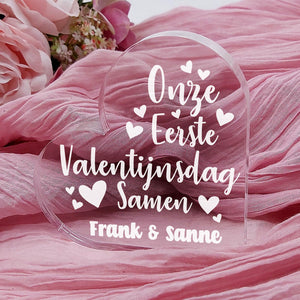 Eerste Valentijnsdag Samen Hart van Plexi Glas