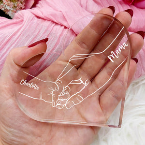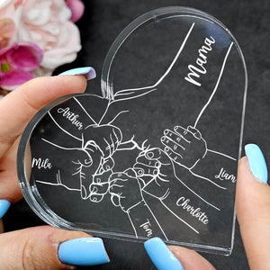 De handen en namen van jouw hele gezin op plexiglas op dit prachtige Plexiglazen Hart