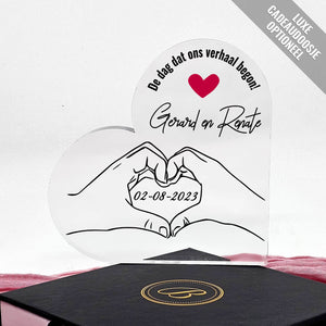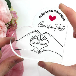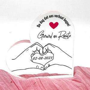 Doe vandaag nog een prachtig plexiglas hart met persoonlijke boodschap cadeau. Lasergegraveerd met eigen namen en een dikte van 1 cm.
