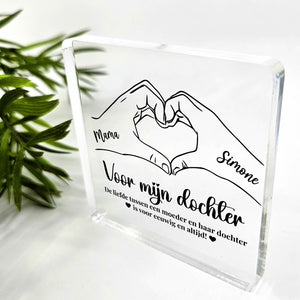 Doe vandaag nog een prachtig plexiglas Aandenken met persoonlijke boodschap cadeau. Lasergegraveerd met eigen namen en een dikte van 1 cm.
