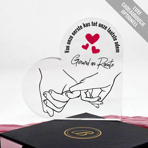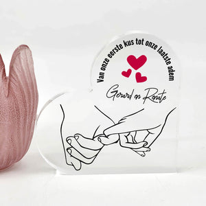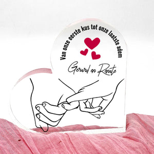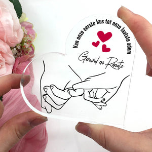 Doe vandaag nog een prachtig plexiglas hart met persoonlijke boodschap cadeau. Lasergegraveerd met eigen namen en een dikte van 1 cm.