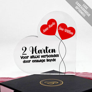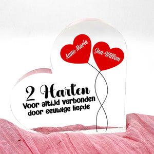Doe vandaag nog een prachtig plexiglas hart met persoonlijke boodschap cadeau. Lasergegraveerd met eigen namen en een dikte van 1 cm.