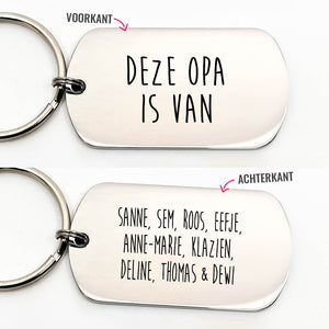 Opa's ze zijn er in vele soorten en maten. Maar deze opa is van jou! Laat hem met deze mooie handgemaakte RVS sleutelhanger weten dat je van hem houd. De sleutelhanger is te personaliseren met de namen van Opa's kleinkinderen.