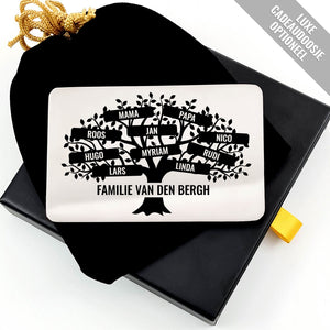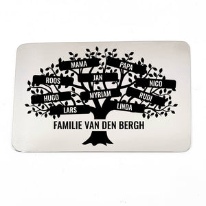 Onze RVS Kaartjes zijn perfect als kaartjes in de portemonnee of als bordje op op een deur. "Familie Boom Stalen Kaartje" is lasergegraveerd met de hand op hoogwaardig RVS-materiaal.