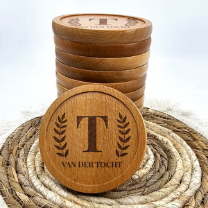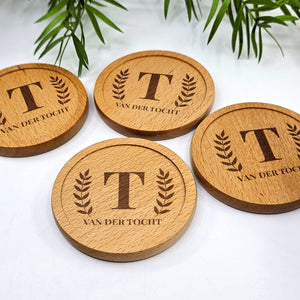 Prachtige onderzetters gegraveerd met eigen naam en initiaal in stijlvol lettertype.