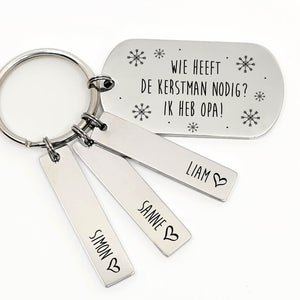 De kerstman is overbodig met een opa zoals die van jou! Veras daarom opa met deze mooie RVS sleutelhanger. de sleutelhanger word handgemaakt en is te personaliseren met de namen van al opa's kleinkinderen, dit maakt het een super mooi cadeau!