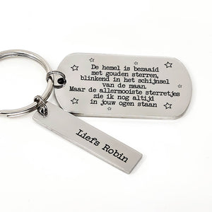 wil jij jou schatje laten weten wat je voor hem of haar voelt? met deze sleutelhanger komt die boodschap zeker over! deze mooie handgemaakte sleutelhanger van RVS kan worden gepersonaliseerd met een naam.