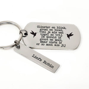ben jij opzoek naar een lief presentje voor jou schatje? deze mooie RVS sleutelhanger is dan een hele geschikte keuze, de handgemaakte sleutelhanger is te personaliseren met een naam.