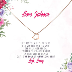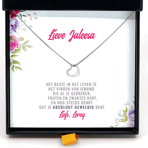 Onze "Het Vinden Van Iemand Die Al Je Gebreken, Fouten en Zwaktes Kent Ketting" wordt geleverd met een gepersonaliseerd kaartje.