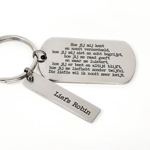 Wil jij je geliefde Verassen met een cadeau vanuit het hart? dan is deze sleutelhanger perfect! deze mooie handgemaakte sleutelhanger van RVS kan worden gepersonaliseerd met een naam.