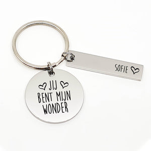 opzoek naar een lief presentje voor je zoon, dochter, man, vrouw of ouders? deze mooie RVS sleutelhanger is handgemaakt en kan worden gepersonaliseerd met een naam.