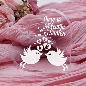 Doe vandaag nog een prachtig plexiglas hart met persoonlijke boodschap cadeau. Lasergegraveerd met eigen namen en een dikte van 1 cm.