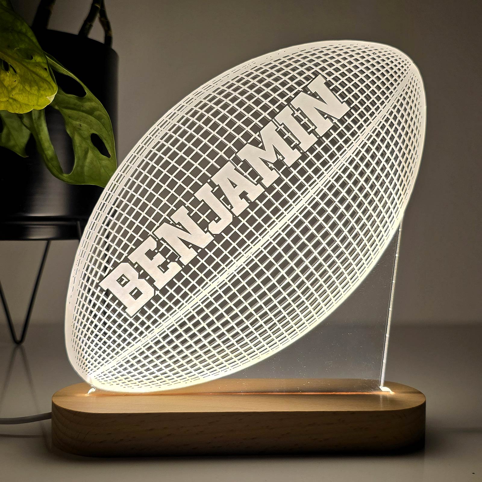Rugby lampje in 3d model met eigen naam