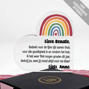 Doe vandaag nog een prachtig plexiglas hart met persoonlijke boodschap cadeau. Lasergegraveerd met eigen namen en een dikte van 1 cm.