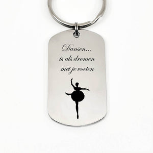 Dansen is jou passie, jij kan je hele ziel in een dans gooien. Onze "Dansen is als dromen met je voeten" RVS sleutelhanger is daarom ook de perfecte sleutelhanger voor jou. De sleutelhanger word met zorg handgemaakt, netjes ingepakt en verstuurd zodat jij lekker kan blijven dansen