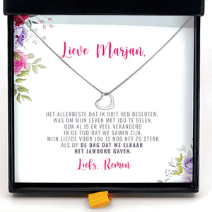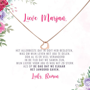 Verras je echtgenote met deze schitterende rosegoud of zilver gekleurde hartjesketting, een tastbaar symbool van jullie onbreekbare band.