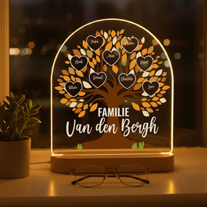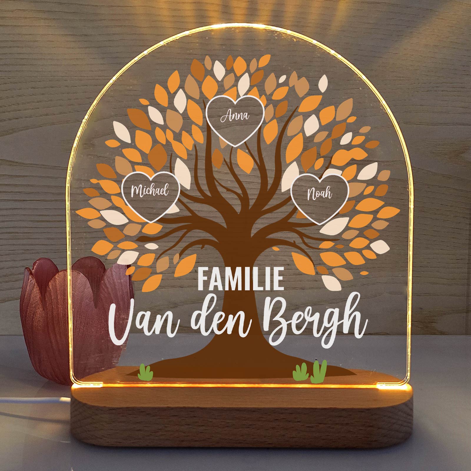 Namen worden van linksboven naar rechtsonder in de boom geplaatst.