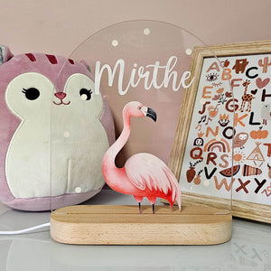 Waterverf Flamingo Nachtlampje voor de kinderkamer met eigen naam. Super schattig om als cadeau te geven bijvoorbeeld bij de geboorte of verjaardag.
