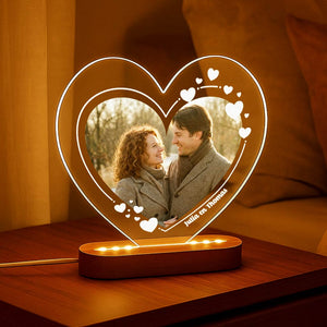 Liefdeslamp met eigen foto in hartvorm. Ter personaliseren met eigen namen.