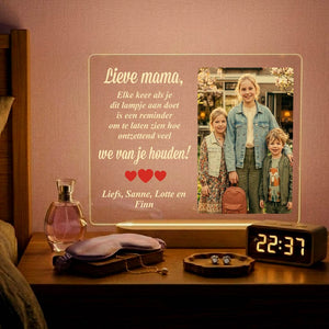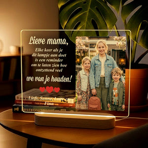 Prachtige lamp met foto van de kinderen voor mama of oma. Compleet gepersonaliseerd met namen van de kinderen en eigen aanhef