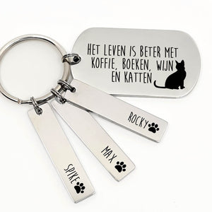Het Leven Is Beter Met Koffie, Boeken, Wijn En Katten Sleutelhanger