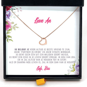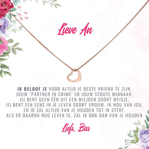 Onze "Ik Beloof Je Voor Altijd Je Beste Vriend Te Zijn Ketting" wordt geleverd met een gepersonaliseerd kaartje.