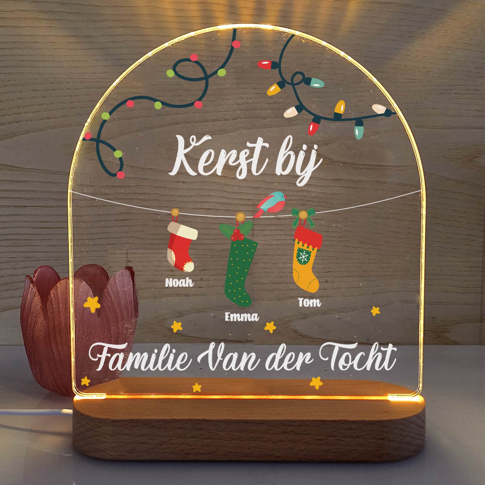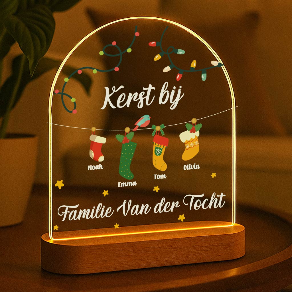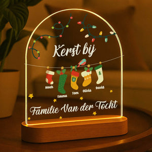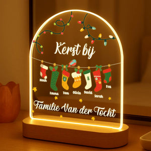 Kerstsokken van de gehele familie met eigen naam! Prachtig lampje voor in de woonkamer of in de vensterdbank!