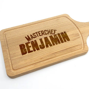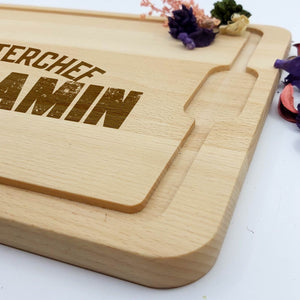 Let op: Hout is een natuurproduct. Hierdoor zal elke gravure iets afwijken van de foto's. Dit komt simpelweg omdat de nerf van het hout bepaald hoe donker de gravure wordt. Dit maakt elke borrelplank wel 100% uniek!