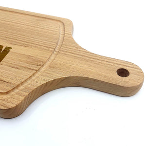 Deze Gegraveerde Hapjesplank is een echte eye-catcher. Wij gebruiken alleen hoogwaardig Europees hout. Elke hapjesplank wordt vooraf behandeld, waardoor het niet kromtrekt door vocht of temperatuurwisselingen. Deze borrelplank is zowel geschikt om op te snijden als te serveren.