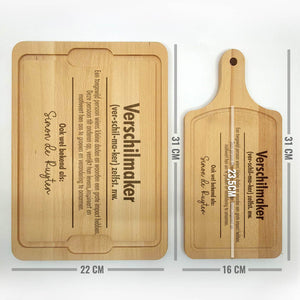 Deze Gegraveerde Hapjesplank is een echte eye-catcher. Wij gebruiken alleen hoogwaardig Europees hout. Elke hapjesplank wordt vooraf behandeld, waardoor het niet kromtrekt door vocht of temperatuurwisselingen. Deze borrelplank is zowel geschikt om op te snijden als te serveren.
